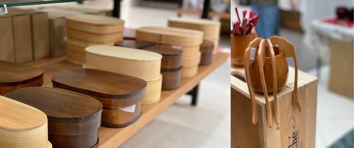 厳選された天然素材から生まれる曲げわっぱや食器類は、ただ美しいだけでなく