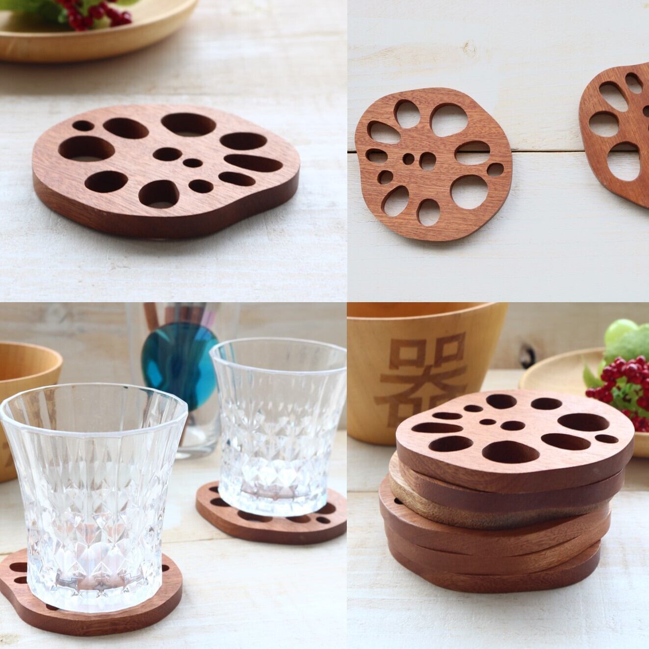 根野菜デザインのレンコン型 wooden coaster