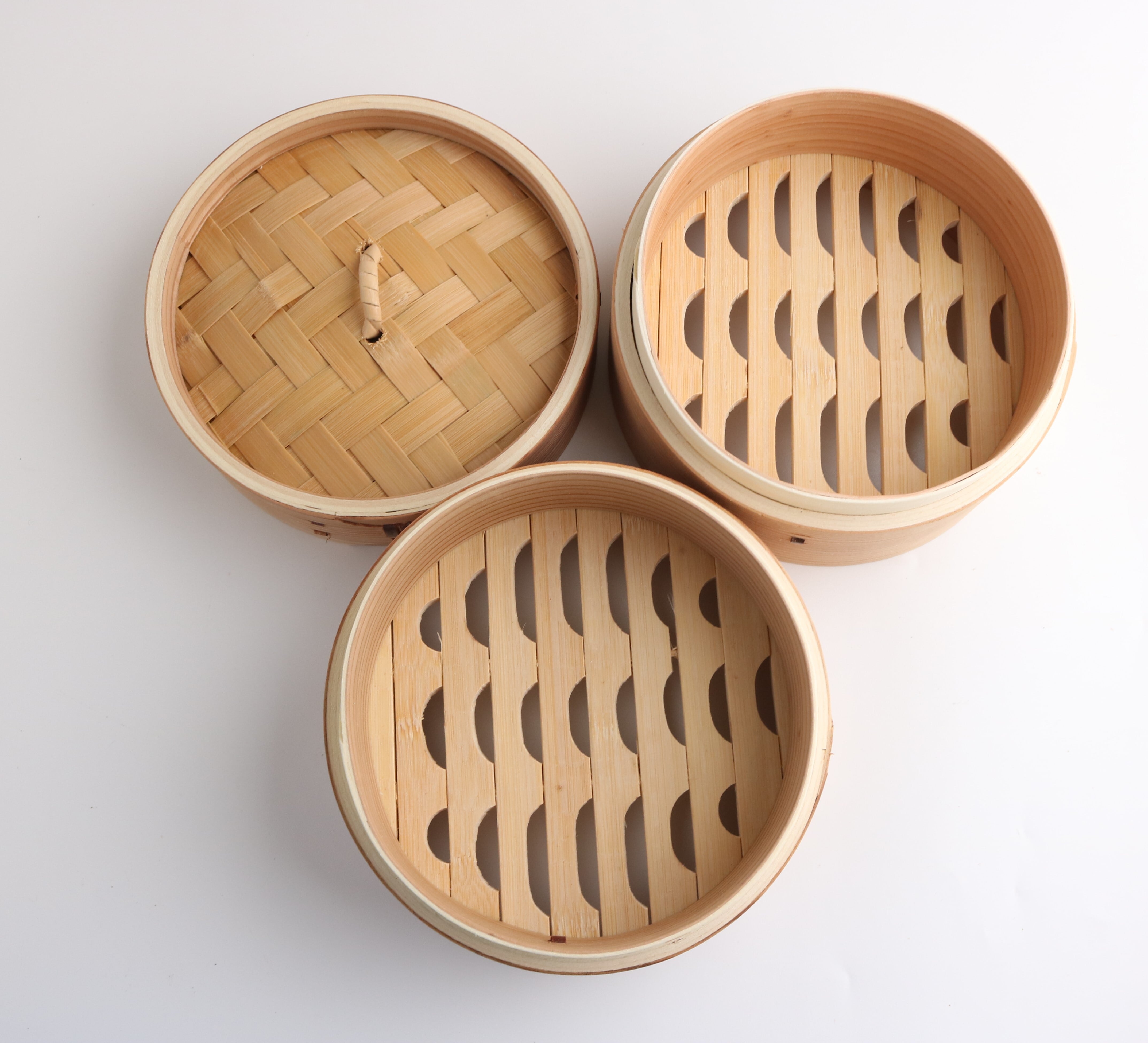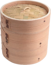 杉の木を使用した2段の蒸し器です。杉の木はお料理に香りを添えるだけでなく、蒸し物をおいしく仕上げる効果もあります。2段に分かれているので、同時に複数の料理を蒸すことができるのも便利です。