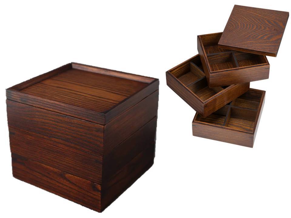 昔ながらの伝統的な技術を駆使して、一つ一つ手作りされた三段重箱(大)。その温かみのある仕上がりは、日本の職人の技術と誇りを感じさせます。お料理が一層美味しく感じられる、重箱の優れた保温性も魅力の一つです。
