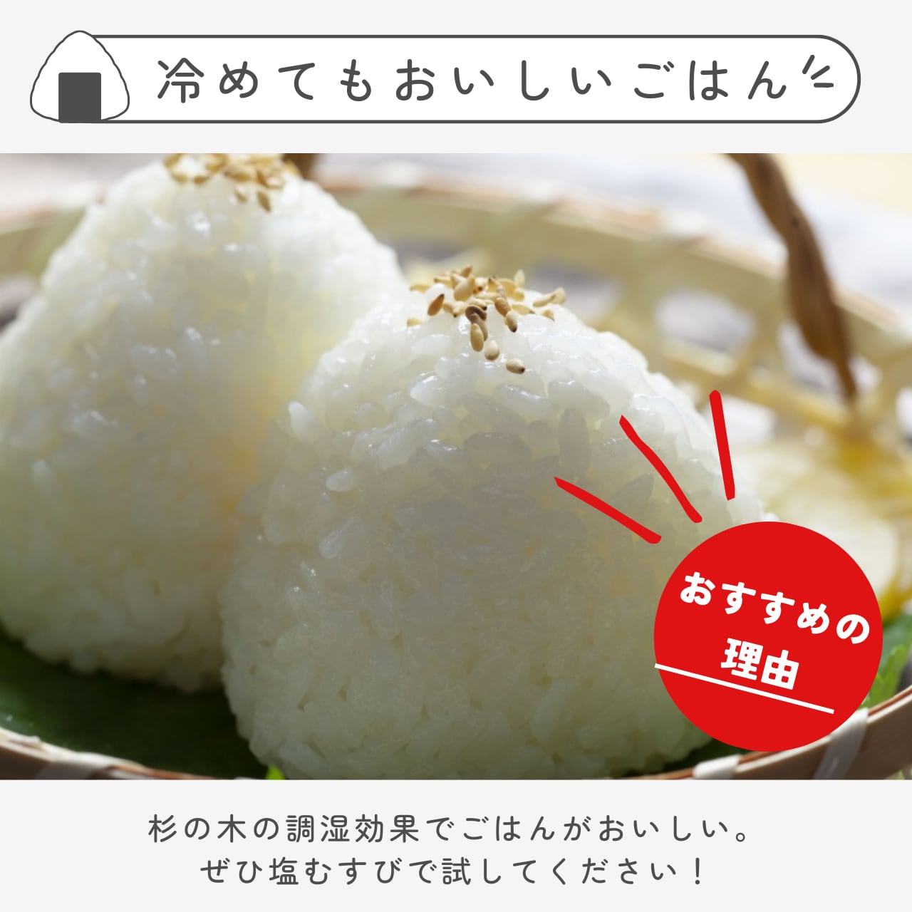 伝統的な技術を活かして丁寧に作られたおひつは、炊き立てご飯を保温し、ふっくらと仕上げます。