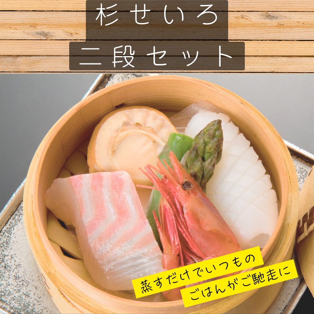 この2段セイロをご利用いただくことで、家庭でも本格的な蒸し料理を楽しむことができます。杉の木の香りが広がりながら、美味しい蒸し物を召し上がっていただけます。